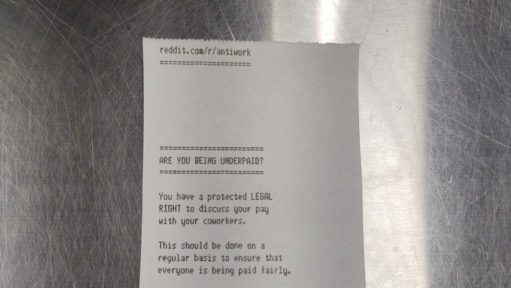 Depuis une semaine, certains commerces subissent des impressions aléatoires de messages incitant les salariés à demander des augmentations ou à se syndiquer.